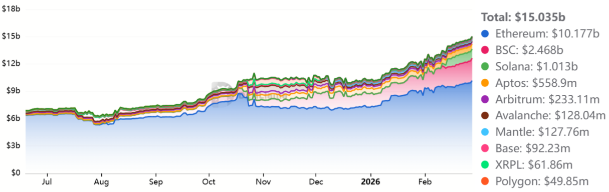 Ethereum DEX volumes dropped to $56.5 billion in February 2026, down significantly from a peak of $128.5 billion in August 2025. During the same period, monthly Solana volumes reached $95.5 billion, down from $120.6 billion in August. This contraction in activity has weighed on network fees and decentralized application (DApp) revenue, effectively reducing the immediate incentives for holding Ether.