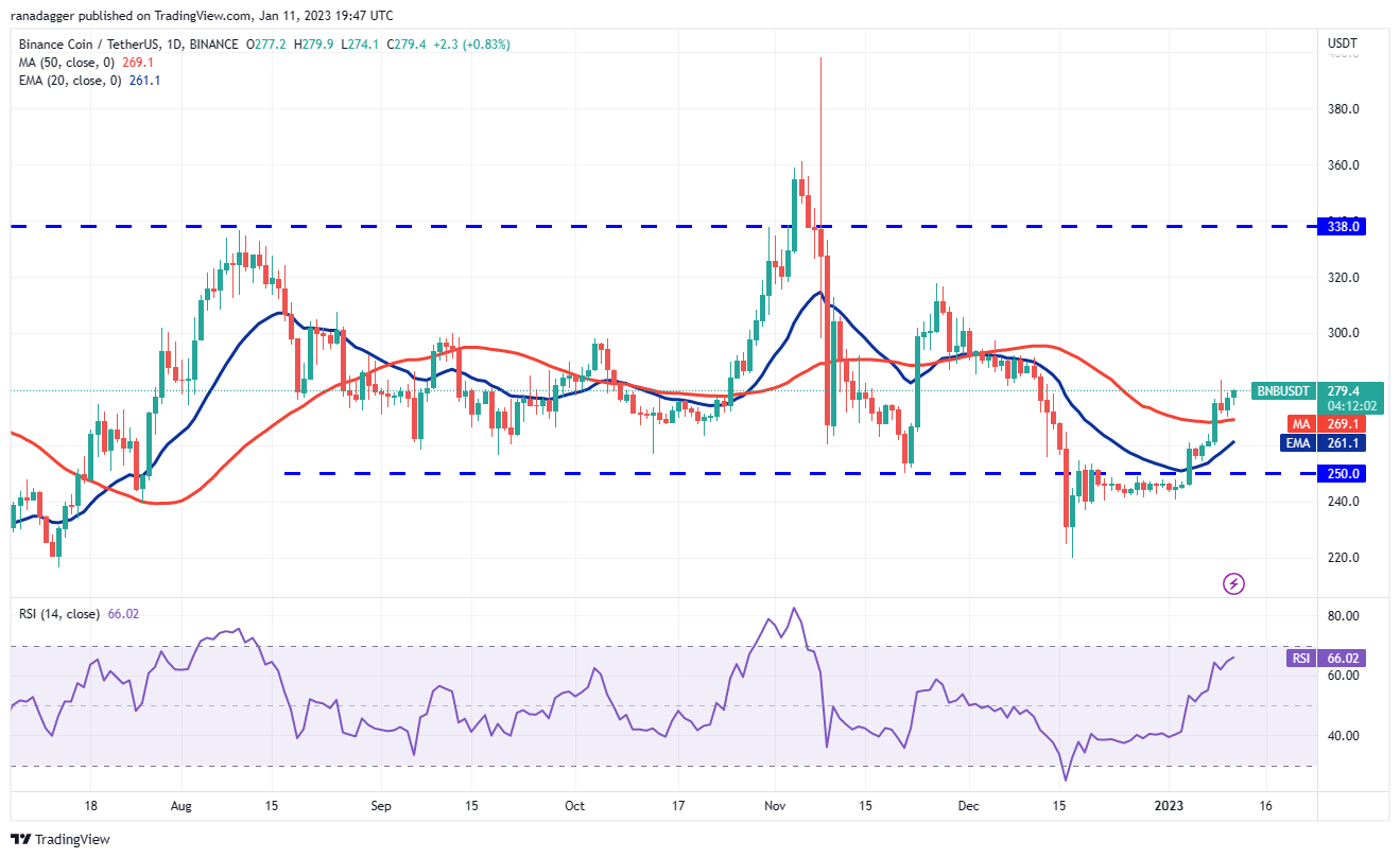 BNB (BNB) turned down from $283 on Jan. 9 but the bears could not yank the price below the 50-day SMA ($269). This suggests that the bulls are buying on dips.