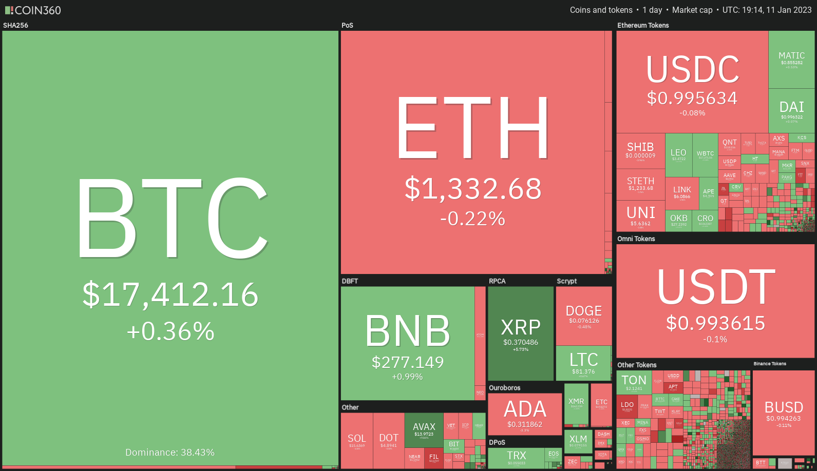 Daily cryptocurrency market performance. Source: Coin360