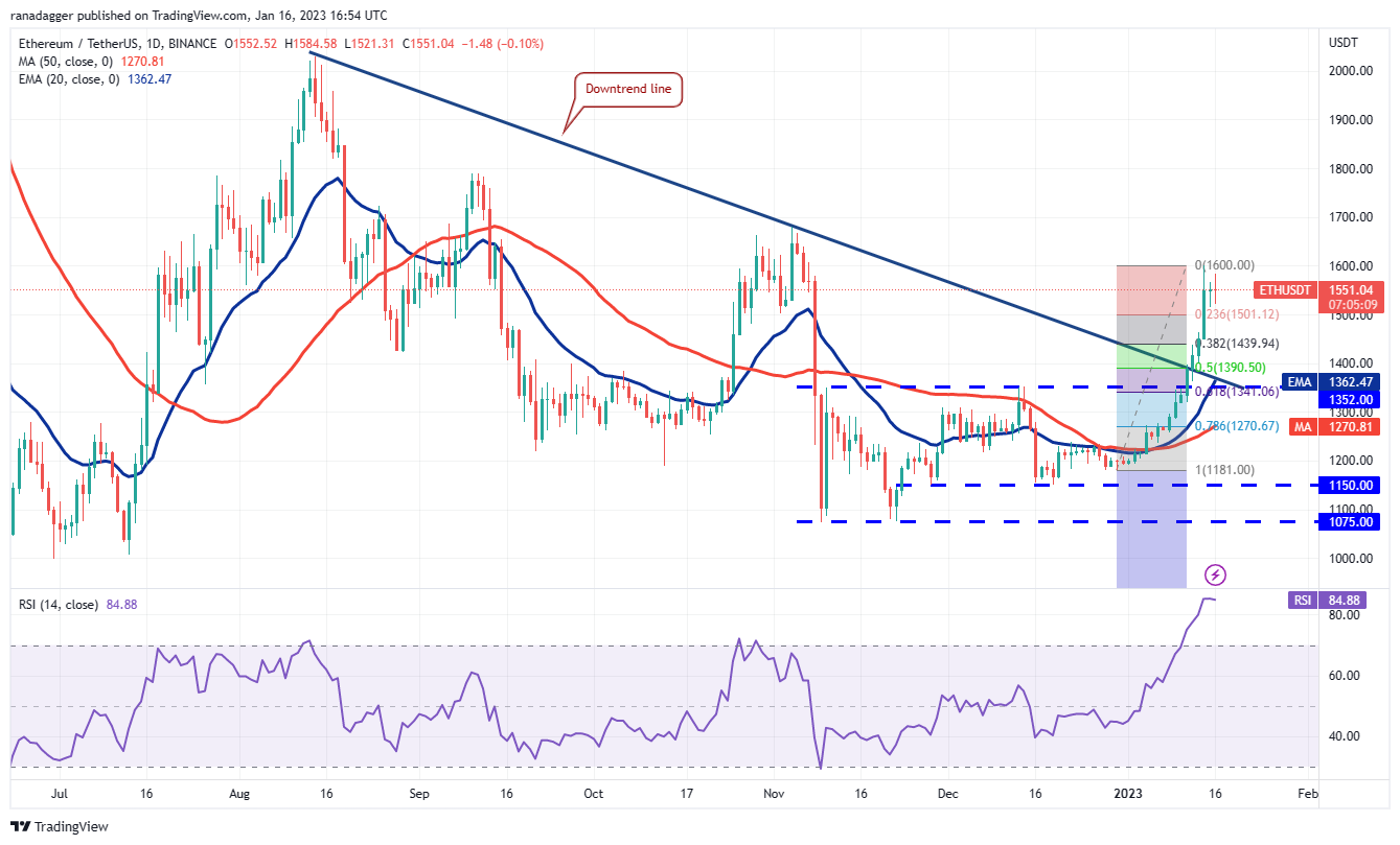 Ether’s (ETH) recovery met with strong resistance at $1,600 on Jan. 14 but the bulls are not ceding ground to the bears. This suggests that the bulls expect the up-move to continue after a brief pause.