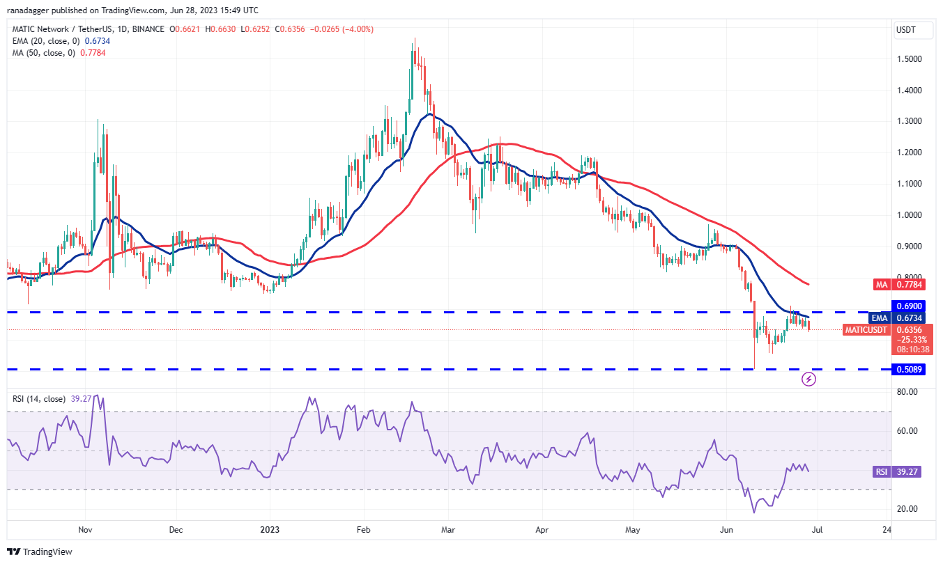 If bulls want to gain the upper hand, they will have to drive and sustain the price above $0.69. The MATIC/USDT pair may then climb to the 50-day SMA ($0.78).