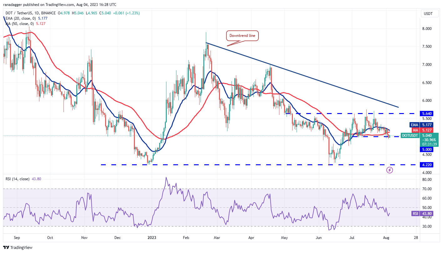 Instead, if the price rebounds off the current level and breaks above the 20-day EMA, it will signal that the range remains intact. The DOT/USDT pair could then rise to $5.33 and thereafter to the overhead resistance at $5.64.