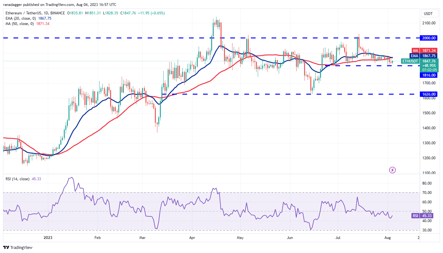 Ether (ETH) slumped below the 50-day simple moving average (SMA) of $1,871 on Aug. 2, which suggests that the bears are trying to gain the upper hand.