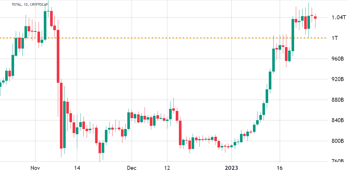 Despite the recent negative crypto and macroeconomic newsflow, the total cryptocurrency market capitalization broke above $1 trillion on Jan. 21. An encouraging sign is that derivatives metrics are not showing increased demand from bearish traders at the moment.